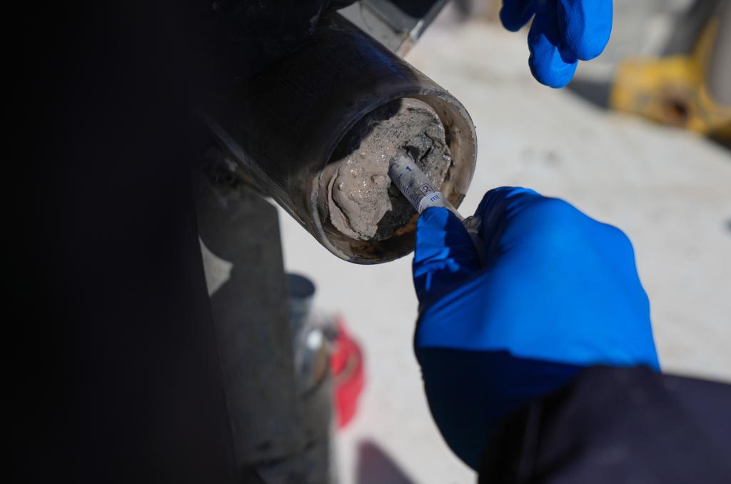 鉆取含有泥土、砂石的湖泊巖芯卻是一項復(fù)雜且精細的工作??蒲腥藛T利用集成的鉆探系統(tǒng),小心翼翼地從湖底取出連續(xù)的湖泊巖芯樣本,這些裝著湖泊巖芯的采樣管如同“時間膠囊”,封存著青藏高原納木錯地區(qū)百萬年來的環(huán)境氣候變化信息。