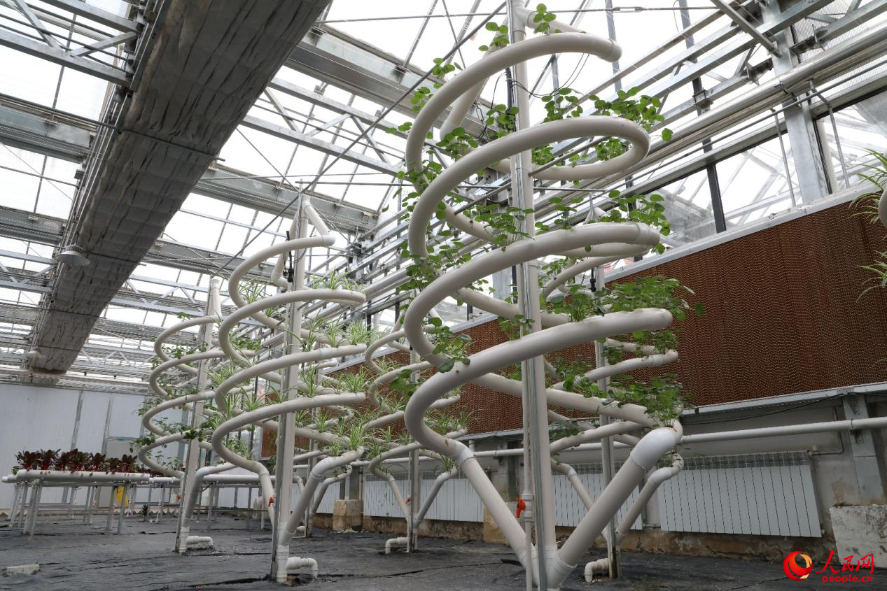圖為螺旋式管道無土栽培。人民網(wǎng)記者 次仁羅布攝