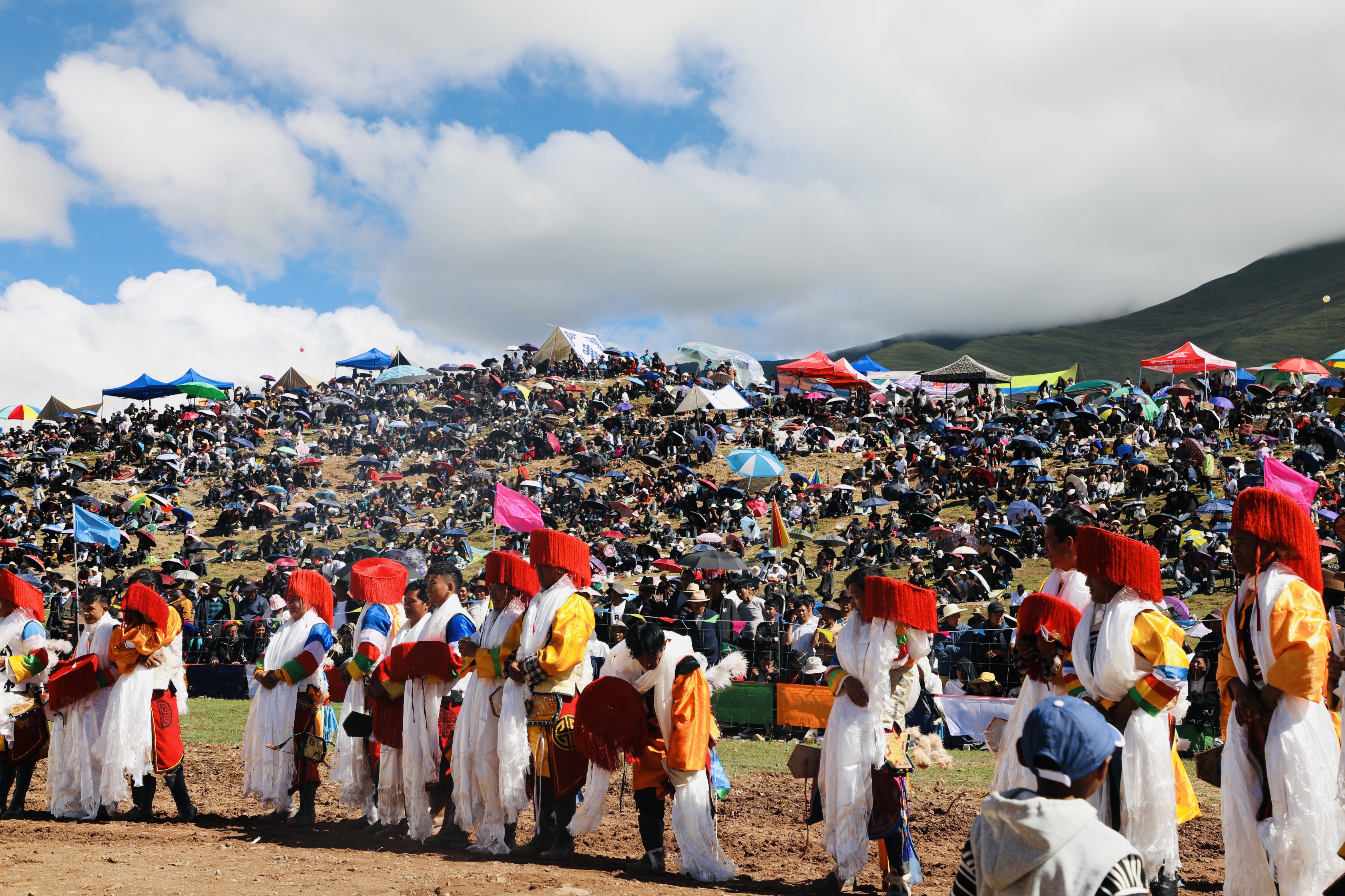 近日,拉薩市林周縣各鄉(xiāng)鎮(zhèn)根據(jù)實際情況陸續(xù)舉辦“望果節(jié)”,每年舉辦的“望果節(jié)”活動內(nèi)容豐富,有傳統(tǒng)賽馬、馬術(shù)表演、歌舞表演等活動。圖為身穿戲服的藏戲表演者。