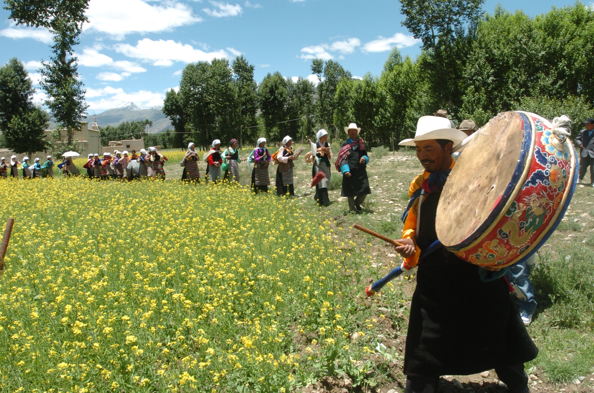 林周,藏語譯為“天然形成的沃土”,被譽為“拉薩的后花園”、“拉薩的糧倉”,天然肥沃的土壤把林周縣分為兩種特殊的地貌,草原和耕地,養(yǎng)育了眾多的林周人。圖為林周縣群眾慶祝“望果節(jié)”。