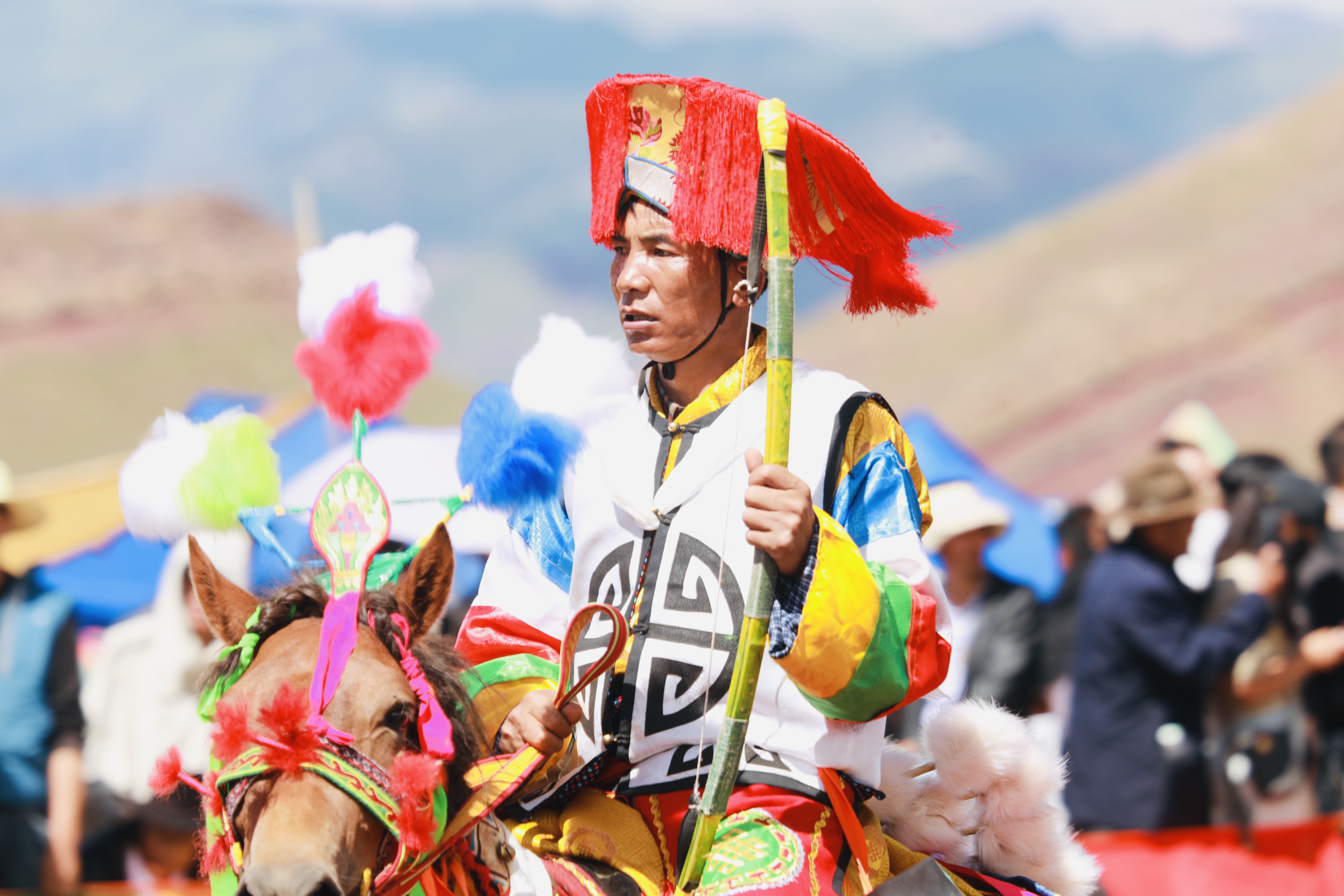 據(jù)悉,賽馬是西藏各地為慶祝豐收舉行“望果節(jié)”(賽馬節(jié))時的傳統(tǒng)慶典活動,是群眾最為喜愛、流傳最廣的體育運動之一。圖為沖許嘛(藏語意為“敬酒者”)為騎手唱歌、敬酒、敬茶。