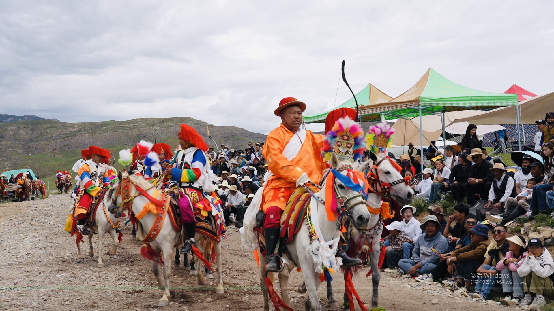 在林周縣邊交林鄉(xiāng)當(dāng)杰村“望果節(jié)”活動現(xiàn)場,隨著激昂的《運動員進行曲》,當(dāng)杰村“平措林望果節(jié)”活動拉開帷幕,38名馬術(shù)運動員、38名射箭運動員在2萬多名觀眾的歡呼聲中邁入現(xiàn)場。圖為賽馬選手參加射箭比賽。
