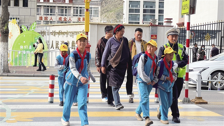 此外,拉薩交警還利用每日“護(hù)學(xué)崗”時間,主動引導(dǎo)學(xué)生正確過馬路、認(rèn)識交通信號燈,提醒學(xué)生不在馬路上嬉戲、追逐打鬧,不乘坐三輪摩托車等不規(guī)范車輛,并向接送學(xué)生的家長講解接送孩子途中應(yīng)注意的安全事項,告誡學(xué)生家長以身作則,杜絕橫穿馬路、闖紅燈等交通陋習(xí),共同營造安全、暢通、文明和諧的道路交通環(huán)境?!拔覀児膭詈⒆觽儗W(xué)到的交通安全知識帶回家,充分發(fā)揮‘小手拉大手’作用,向家人宣傳道路交通安全知識,強化家長、學(xué)生安全意識和自我保護(hù)意識?!瘪R定雄說。
