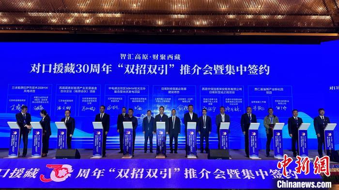 對(duì)口援藏30周年“雙招雙引”推介會(huì)暨集中簽約活動(dòng)15日在拉薩舉行。此次推介會(huì)集中簽約援藏招商引資項(xiàng)目18個(gè)、協(xié)議投資104.07億元(人民幣,下同)。