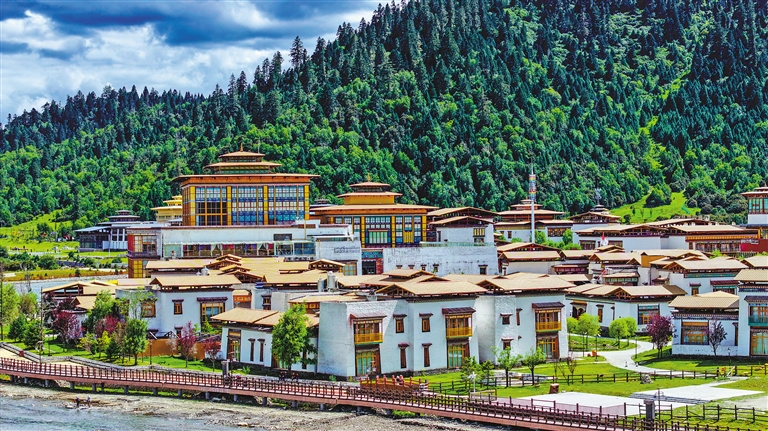 廣東路、廣州大道、南粵大道、深圳大道、梅州大道……在林芝處處可見廣東元素。廣東援藏工作隊來到林芝后,幫助林芝主城區(qū)實現(xiàn)從“沒有一條水泥路”到“交通網(wǎng)絡(luò)四通八達”的蛻變;實施八一電廠、“天翼看西藏”智慧旅游項目、數(shù)字林芝等一大批項目,促進縣縣通光纜、鄉(xiāng)鄉(xiāng)通電話、村村通電力,助推林芝實現(xiàn)從“照明基本靠油、通訊基本靠吼”到“通電百分百、通訊全覆蓋”的蝶變;建設(shè)林芝會展中心、工布印象、尼洋河防洪堤、福清河堤圍等一大批公共服務(wù)項目,建成廣場和綜合市場等設(shè)施12245平方米,助推林芝公共服務(wù)實現(xiàn)從長期發(fā)展滯后到走在全區(qū)前列的巨變。截至2023年底,林芝公路通車里程達到7462.65公里,鄉(xiāng)鎮(zhèn)公路通達率、通電率、通水率、寬帶通達率、通郵率均實現(xiàn)100%,行政村公路通達率、通電率、通水率、電話通達率、手機通達率均實現(xiàn)100%。
