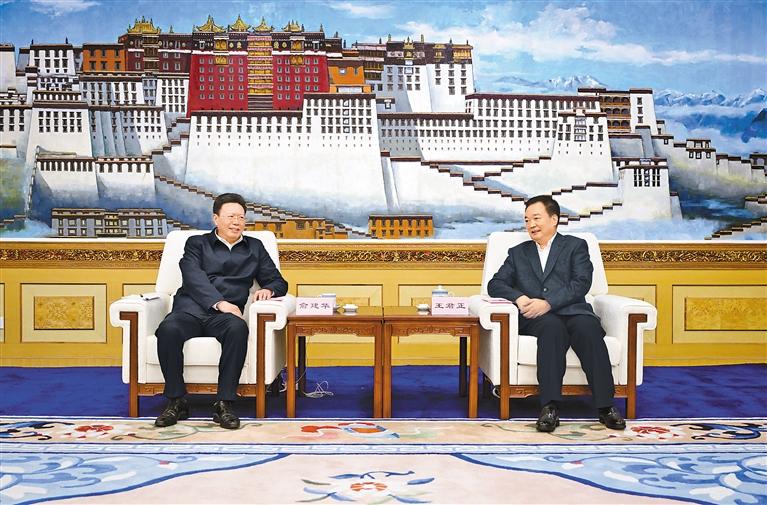 29日上午,自治區(qū)黨委書記王君正在拉薩與海關(guān)總署署長、黨委書記俞建華一行座談。
