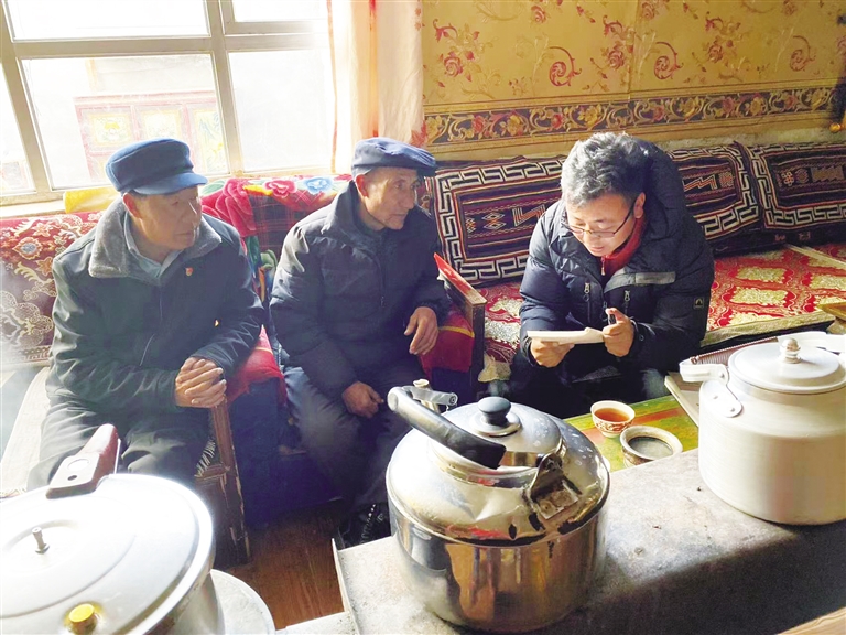 旦增頓珠作為隊長和第一書記,一邊努力克服高反給自身帶來的不適,一邊幫助隊員調(diào)整心態(tài)、適應(yīng)環(huán)境,并主動挑起了照顧大家的重?fù)?dān)——到草場上撿牛糞取暖,到小河溝破冰挑水,研究如何用高壓鍋做飯。他的付出,隊員們看在眼里、記在心里,在旦增頓珠的帶領(lǐng)和鼓舞下,隊員們很快適應(yīng)了高原的生存環(huán)境,隨即投入到走訪和調(diào)研工作中。