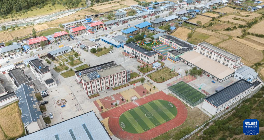 9月4日拍攝的娘蒲鄉(xiāng)中心小學(無人機照片)。新華社記者 晉美多吉 攝