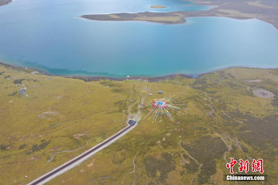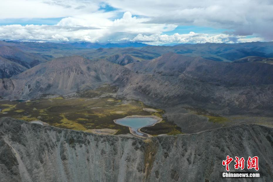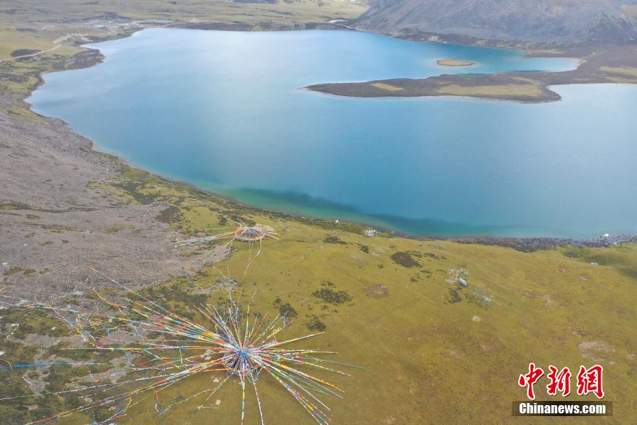 9月6日,思金拉措景區(qū)風(fēng)光秀麗。思金拉措湖位于西藏拉薩市墨竹工卡縣,海拔4500米,湖邊群山高聳、草甸金黃。從空中俯瞰,思金拉措湖心島如同“黃金右腳”踢球。圖為思金拉措一角。(無人機(jī)照片)