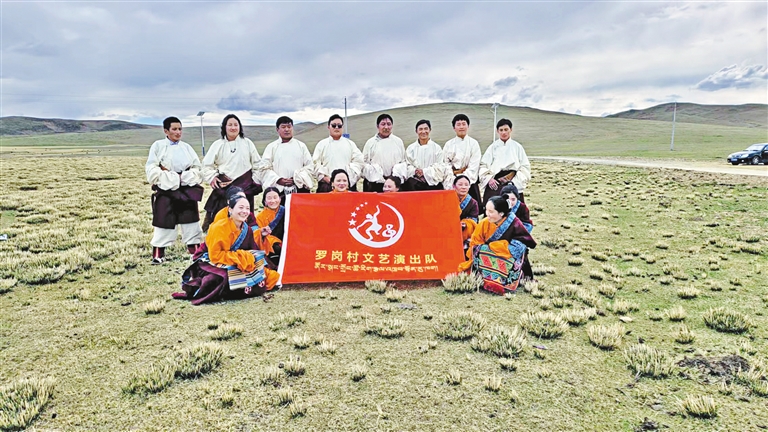 那曲市色尼區(qū)那曲鎮(zhèn)羅崗村文藝演出隊(duì)合影。通訊員 晉美頓旦 記者 王超 攝