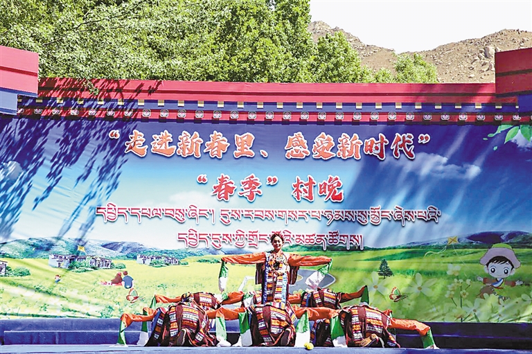 日喀則市定結(jié)縣藝術(shù)團(tuán)與山南市洛扎縣藝術(shù)團(tuán)在曲水縣南木村演出。通訊員 晉美頓旦 記者 王超 攝