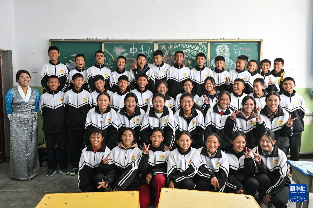 記者跟隨扎西旺姆邊走邊看,校園里國旗隨風飄揚;走廊上,孩子們聚在“弘揚中華優(yōu)秀傳統(tǒng)文化”展板前觀看;操場上,各民族學生正在一起踢球運動……