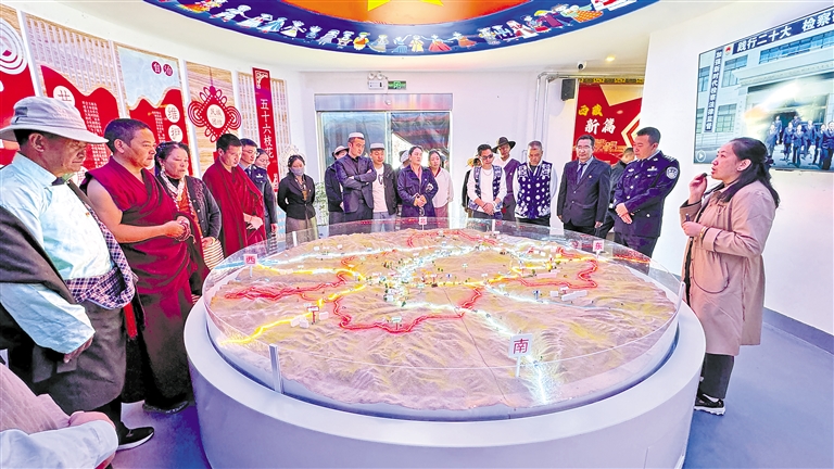 9月14日,拉孜縣曲下鎮(zhèn)以鑄牢中華民族共同體意識(shí)為主線(xiàn),舉辦首屆“格桑花開(kāi)石榴紅·凝心鑄魂新征程”運(yùn)動(dòng)會(huì)暨“迎中秋、慶團(tuán)結(jié)”茶話(huà)會(huì)。 圖為各民族群眾代表參觀(guān)拉孜縣鑄牢中華民族共同體意識(shí)教育館。