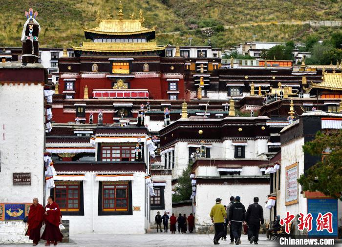 9月以來(lái),西藏自治區(qū)日喀則市旅游熱度不減,始建于公元1447年的扎什倫布寺成為眾多中外游客的首選。圖為9月27日,游客在扎什倫布寺內(nèi)游覽參觀。中新社記者 李林 攝