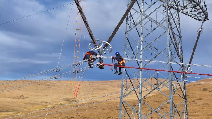 9月的林周,高原的陽光刺得睜不開眼。在走線現(xiàn)場,小組負責(zé)人扎西頓珠指揮兩名工作人員上塔進行懸掛接地線,隨后,兩名走線人員頂著強烈的紫外線對2329號至2325號鐵塔開展線路走線工作,在走線過程中,他們認真檢查導(dǎo)線有無磨損、斷股、嚴重銹蝕、外層損傷、零部件缺失等缺陷?,F(xiàn)場走線組負責(zé)人扎西頓珠向記者介紹“在高海拔、大溫差、強風(fēng)沙的氣候環(huán)境下,設(shè)備長期暴露在外,受到風(fēng)吹日曬雨淋,為精準掌握設(shè)備狀況,每年年檢都要開展走線消缺工作?!?/p>