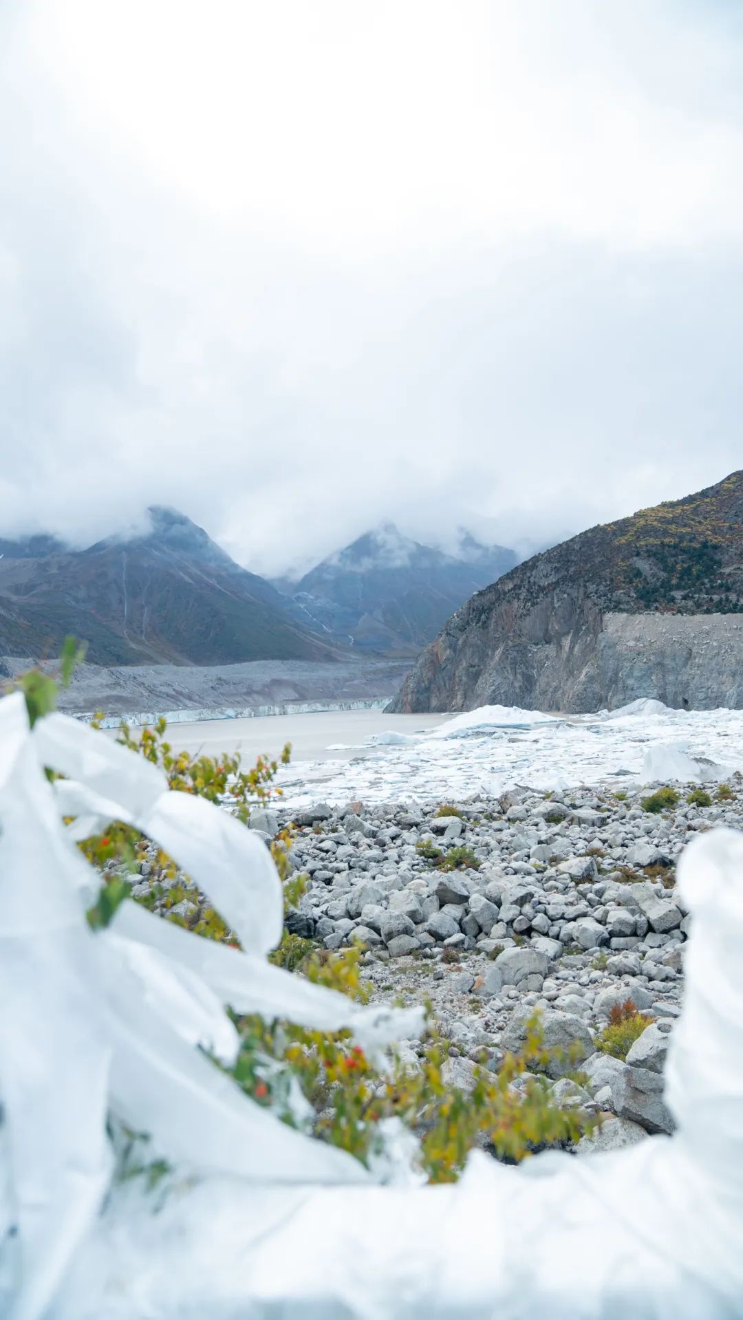 在八宿來古村,環(huán)顧四周可見至少6條冰川,統(tǒng)稱來古冰川群。冰川從海拔6600多米的山峰一路傾瀉至海拔4000米左右,站在它寬闊的冰體之上,猶如穿越到冰河世紀。當(dāng)我們站在陽光照耀下絕美的天然藍冰洞里,仿佛穿越進童話之中。當(dāng)日頭漸漸落下,在然烏湖畔,萬丈金光從天而降照射在雪山之巔,一幅“日照金山”之景就此“繪制”完成。