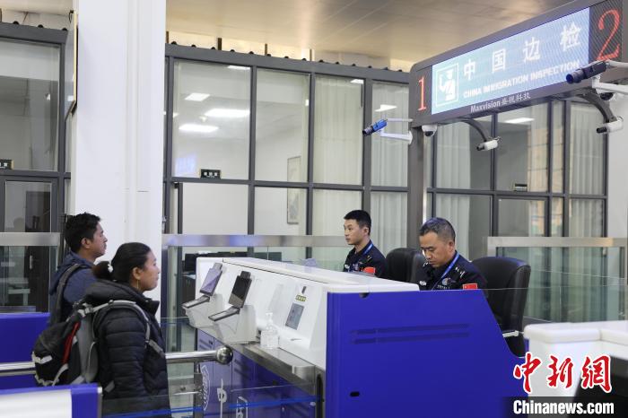 圖為10月29日,吉隆出入境邊防檢查站民警正在聯(lián)檢大廳為尼泊爾邊民辦理入境手續(xù)。肖富貴 攝