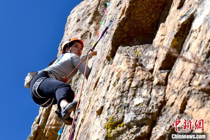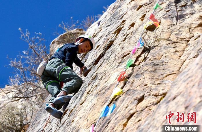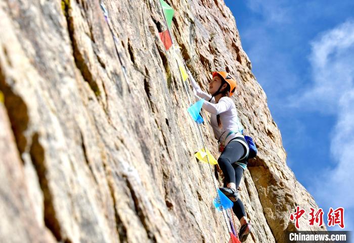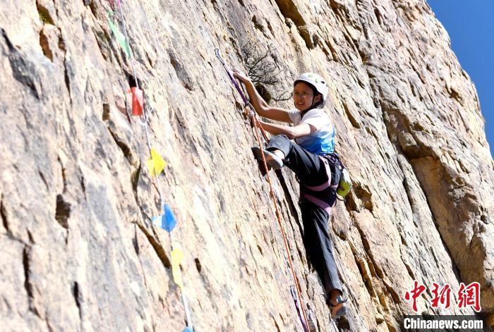 11月17日,2024年西藏自治區(qū)攀巖自然巖壁公開賽決賽在拉薩市城關區(qū)奪底街道吉倉自然巖壁場地舉行。本次賽事共有來自全國的55名選手參賽,分預賽和決賽兩輪。圖為參賽選手劉亞豪決賽中。中新社記者 李林 攝