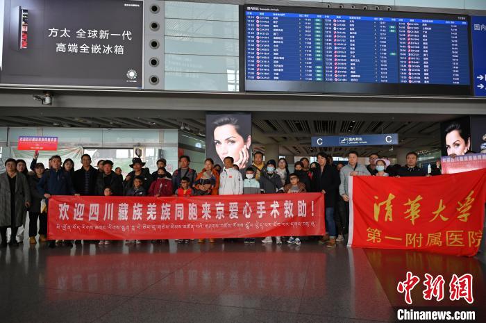 18日午時,來自四川省甘孜藏族自治州和阿壩藏族羌族自治州的10名藏族患者在家屬等人陪同下,乘坐飛機抵達北京首都機場,將在北京四家醫(yī)院接受先天性心臟病、脊柱側彎等疾病的免費手術治療。