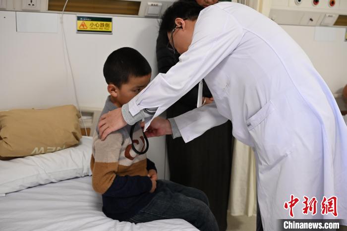 圖為北京協(xié)和醫(yī)院心外科副主任、副主任醫(yī)師張超紀為患兒尼瑪(化名)初步檢查身體情況。中新社記者 徐雪瑩 攝