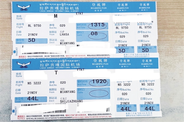 經(jīng)綿陽中轉(zhuǎn)的跨航司中轉(zhuǎn)登機(jī)牌樣式。