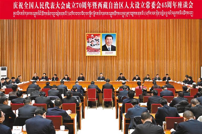 11月25日,西藏自治區(qū)召開慶祝全國人民代表大會成立70周年暨西藏自治區(qū)人大設立常委會45周年座談會。自治區(qū)黨委書記王君正出席并講話。 本報記者 李洲 攝