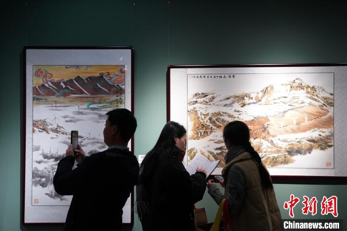 圖為12月8日,“家在高原”中國畫作品展現(xiàn)場。中新社記者 蘇丹 攝