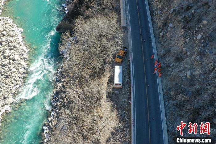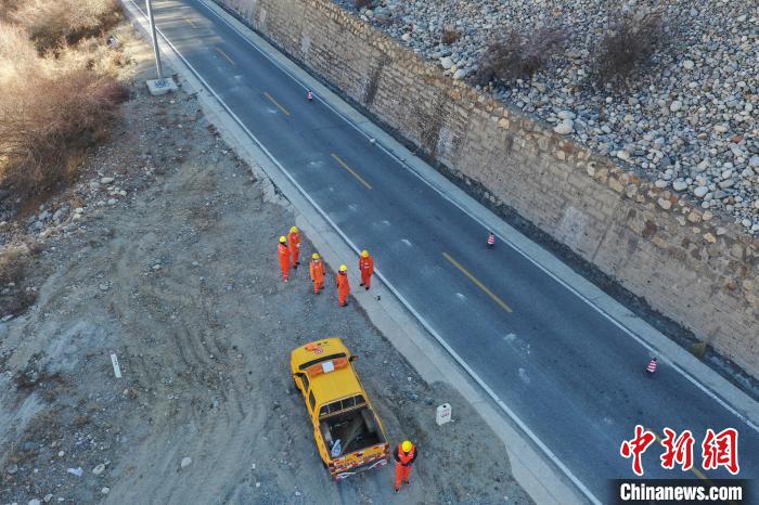 12月16日,西藏自治區(qū)林芝公路事業(yè)發(fā)展和應(yīng)急保障中心(工布江達(dá)養(yǎng)護(hù)段)道路養(yǎng)護(hù)工人及時(shí)清除川藏公路上的落石,保障道路暢通。該養(yǎng)護(hù)段擔(dān)負(fù)著川藏公路沿線工布江達(dá)縣路段的養(yǎng)護(hù)管理、應(yīng)急搶險(xiǎn)等工作,包括路面修補(bǔ)、清理邊溝、維護(hù)交通安全設(shè)施等日常養(yǎng)護(hù)工作。圖為養(yǎng)護(hù)工人在公路上巡護(hù)。(無(wú)人機(jī)照片)中新社記者 貢嘎來(lái)松 攝