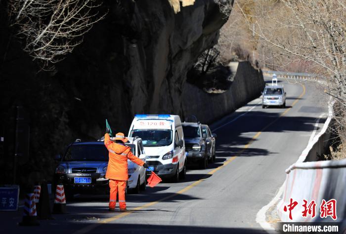 12月16日,西藏自治區(qū)林芝公路事業(yè)發(fā)展和應(yīng)急保障中心(工布江達(dá)養(yǎng)護(hù)段)道路養(yǎng)護(hù)工人及時(shí)清除川藏公路上的落石,保障道路暢通。該養(yǎng)護(hù)段擔(dān)負(fù)著川藏公路沿線工布江達(dá)縣路段的養(yǎng)護(hù)管理、應(yīng)急搶險(xiǎn)等工作,包括路面修補(bǔ)、清理邊溝、維護(hù)交通安全設(shè)施等日常養(yǎng)護(hù)工作。圖為養(yǎng)護(hù)工人引導(dǎo)往來(lái)車輛。中新社記者 王磊 攝