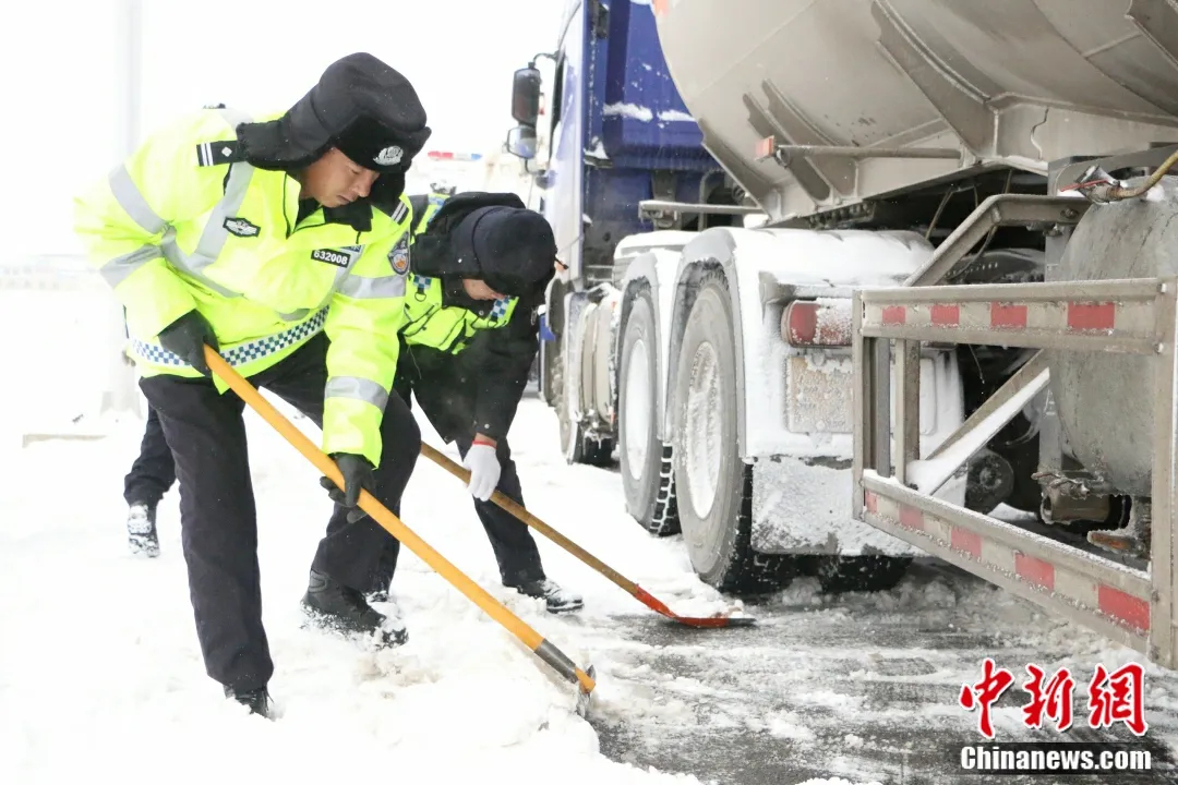 資料圖為交警除雪保通畫(huà)面。受訪(fǎng)單位提供