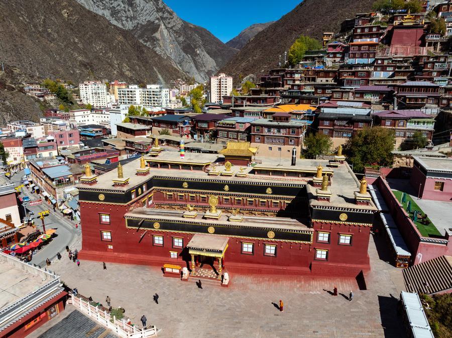 這是2024年11月2日在四川省甘孜州德格縣拍攝的德格印經(jīng)院(無人機(jī)照片)。新華社記者 沈伯韓 攝