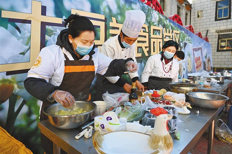 “艾瑪土豆”是南木林縣的一張“金名片”。南木林縣“特色盛會 湘巴好物”艾瑪土豆美食文化體驗暨非遺文化展演活動上,當?shù)貜N師以艾瑪土豆為食材,通過蒸、煮、炒、炸等烹飪方式,制作了一系列艾瑪土豆美食。區(qū)外旅行博主、攝影愛好者參觀體驗了艾瑪土豆的制作過程,品嘗了其獨特風味,稱贊不已。