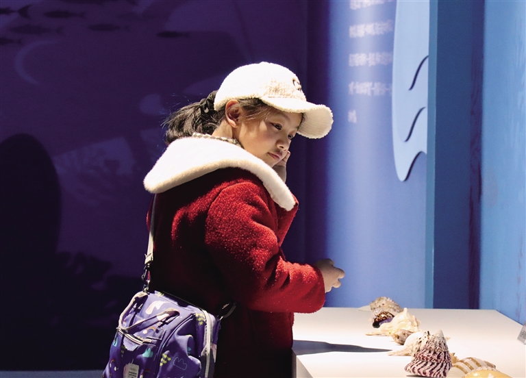 “我從沒一次性見過這么多貝殼,太漂亮了?!笔忻袂溥呎f邊用手指輕輕觸碰著允許觸碰的各類海洋貝殼,細(xì)細(xì)感受著貝類的紋理和質(zhì)地?!斑@次展覽不僅讓我增長了見識,還讓我對海洋生物產(chǎn)生了更濃厚的興趣,這周末我要帶朋友一起再來看看?!?/p>
