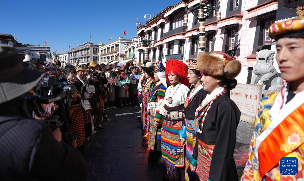 1月3日,模特在拉薩八廓街巡游。新華社記者 晉美多吉 攝