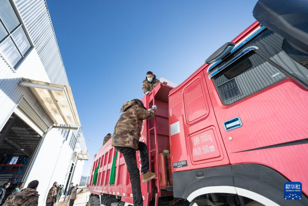 1月8日,在日喀則市經(jīng)開區(qū)物資儲備倉庫,裝好抗震救災物資的車輛駛出園區(qū)。新華社記者 丁增尼達 攝