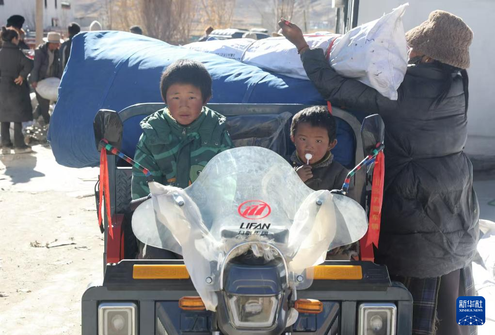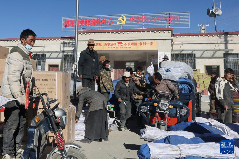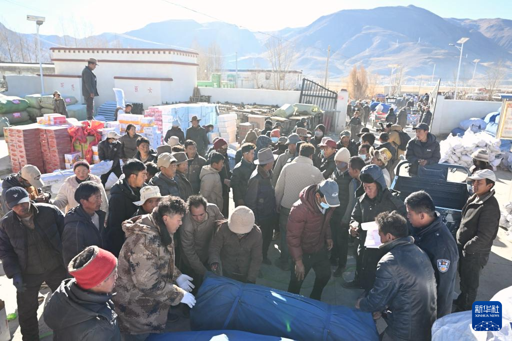 1月9日,受災(zāi)群眾在措布村村委會領(lǐng)取救災(zāi)物資。新華社記者 李響 攝