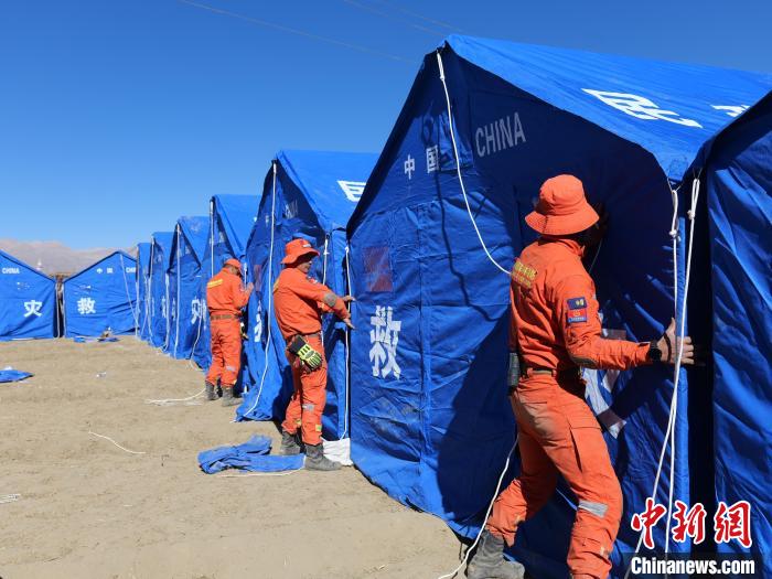 1月8日,西藏森林消防總隊林芝支隊巴宜區(qū)中隊在西藏日喀則市定日縣措果鄉(xiāng)開展帳篷搭設作業(yè),先后在嘎熱果吉村、雪珠村、吉翁村搭設120余頂帳篷。