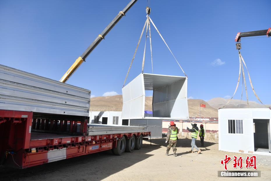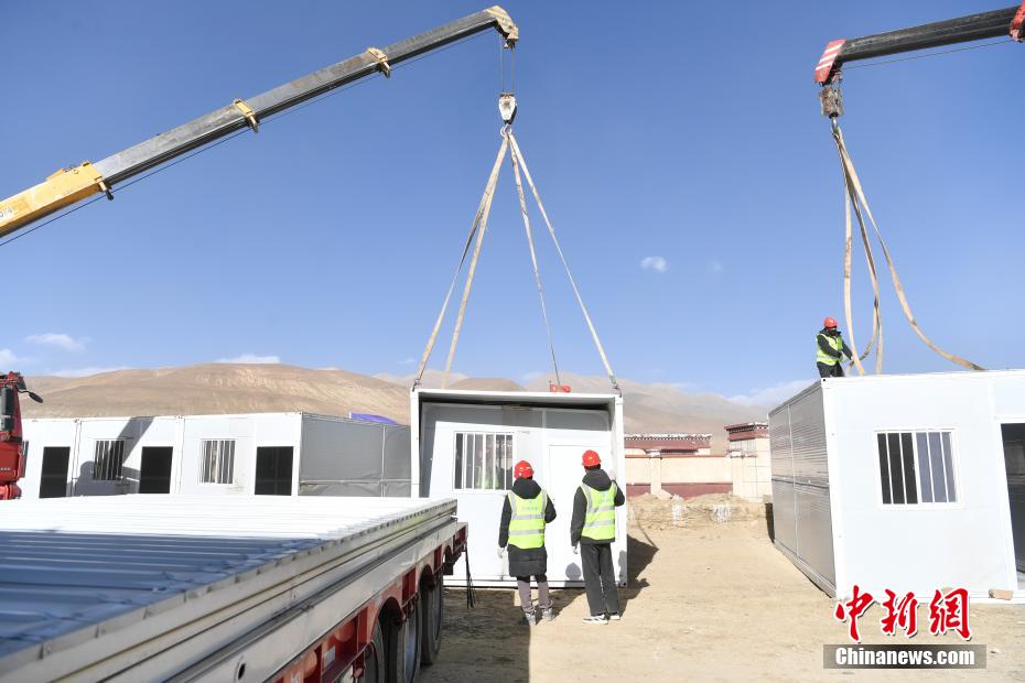 1月9日,西藏自治區(qū)定日縣曲洛鄉(xiāng)措昂村安置點,愛心企業(yè)為受災(zāi)民眾搭建活動板房。當(dāng)日,位于西藏自治區(qū)定日縣曲洛鄉(xiāng)措昂村安置點,西藏各級救援人員和愛心企業(yè)不斷轉(zhuǎn)運、發(fā)放生活物資、搭建活動板房、全力保障受災(zāi)民眾的飲食供應(yīng)等,保障受災(zāi)民眾基本生活。中新社記者 貢嘎來松 攝