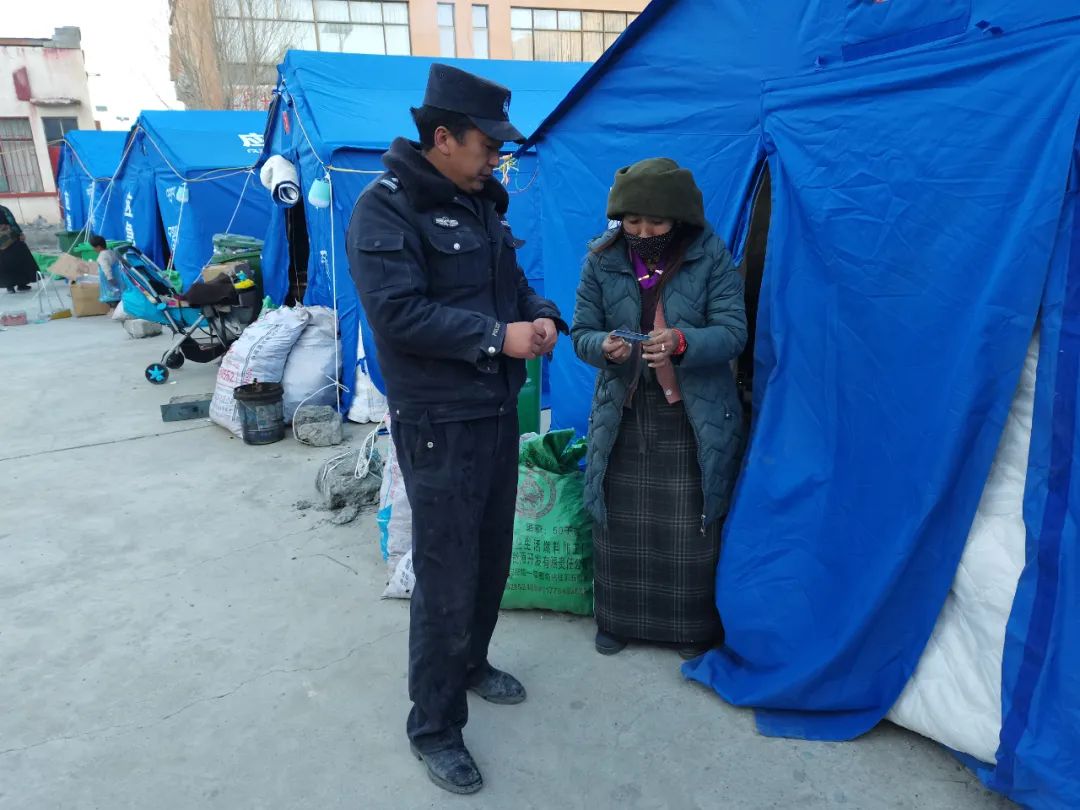 天還未亮,民輔警已投身救災(zāi)一線,忙碌于清點救援物資。緊接著,他們步履不停,深入每一村每一戶,細致收集家庭基本信息,評估受災(zāi)程度及房屋損毀情況,并逐一核實帳篷內(nèi)供暖、供電等基本生活需求的落實情況。走訪之際,一張張警民聯(lián)系卡被張貼于顯眼位置,親手遞到群眾手中,旨在迅速響應(yīng)群眾訴求,引導合理表達困難與期望。同時,他們對孤寡老人、殘疾人、精神病患者、流浪人員及重癥病患等特殊群體給予了特別關(guān)注,積極協(xié)調(diào)資源,切實解決其實際難題,構(gòu)建起一座堅實的警民溝通橋梁。為確保轄區(qū)安寧,民輔警們進一步加大了社會面巡邏力度,細致排查潛在矛盾糾紛,全力預防偷盜、詐騙、搶劫等違法犯罪行為,當?shù)弥罕娯斘锉焕颐媾R損毀,他們不顧危險,憑專業(yè)技能穿梭廢墟,爭分奪秒搶救財物,全力守護群眾財產(chǎn)安全。在這過程中,民輔警不辭辛勞,反復穿梭于村落之間,確保救助工作覆蓋到每一個角落,每一個人,無論多少次往返,只為確?!安宦┮粦簦宦湟蝗恕??!熬焱?,你們辛苦了!”“感謝你們的付出,為你們點贊加油!我們一起努力戰(zhàn)勝災(zāi)情!”……群眾一句句暖心的話語,化作源源不斷的動力,讓民輔警們更加堅定了抗震救災(zāi)必勝的信心 。