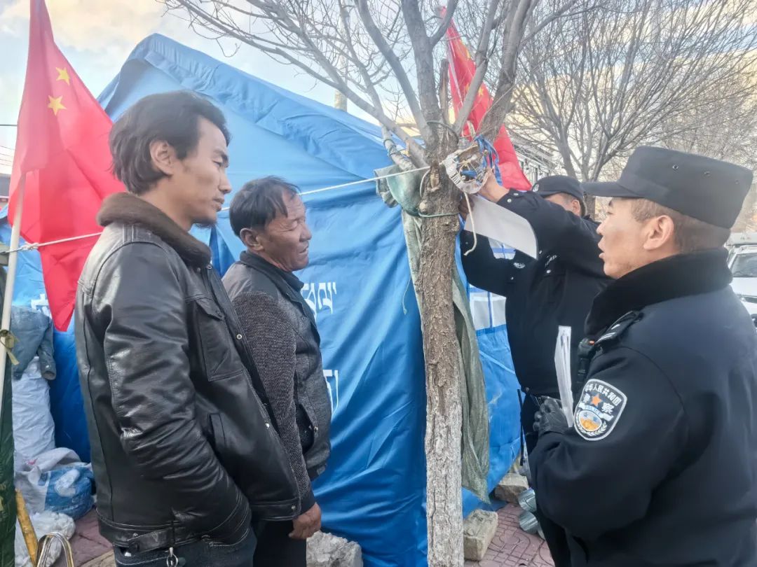 災(zāi)情如令,責任重于泰山。在這場爭分奪秒與時間賽跑的抗震救災(zāi)戰(zhàn)斗中,拉孜公安始終堅定地與群眾并肩同行,以“伴隨式”守護的帳篷警務(wù)室,為受災(zāi)群眾筑牢安全防線。一頂頂 “帳篷警務(wù)室” 以迅雷不及掩耳之勢搭建完成,恰似一座座堅固的堡壘;一面面鮮艷的黨旗在廢墟之上獵獵作響,傲然飄揚,它們共同構(gòu)成了守護受災(zāi)群眾生命財產(chǎn)安全的鋼鐵長城,成為抗震救災(zāi)戰(zhàn)場上一道令人動容的亮麗風景線 。