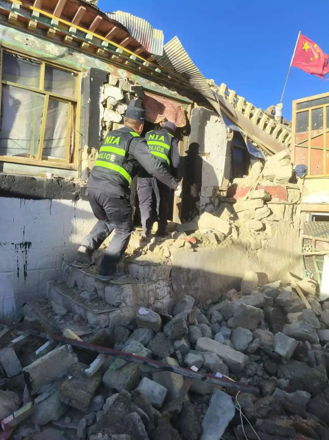 民警在得知情況后,第一時間了解次仁多布杰房屋的受災情況,在確認無二次坍塌情況下,請示上級領導,經(jīng)同意后,協(xié)調(diào)雜村村委會、雜村安置區(qū)負責人員前往村民次仁多布杰家里幫助戶主搶救貴重財產(chǎn),18時39分,次仁多布杰屋內(nèi)貴重物品全部轉移完畢,救援民警才撤離現(xiàn)場。這仿佛在傳遞著一種無聲的力量:有我們在,別害怕。