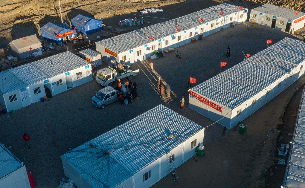 1月13日,在日喀則市定日縣長(zhǎng)所鄉(xiāng)古榮村,受災(zāi)群眾正在搬進(jìn)板房。新華社記者 丁增尼達(dá) 攝