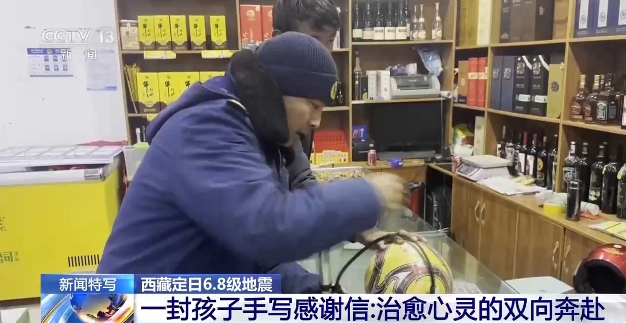 曲洛鄉(xiāng)野江村安置點內有近一百名孩子。10日晚,一群小朋友把一個踩扁的易拉罐踢著玩,還拉著忙完的消防員一起切磋“球”技。這個視頻被日喀則市森林消防大隊的消防員隨手記錄下來并發(fā)在工作群里,一名消防員看到后,當晚驅車到縣城買了一個足球。