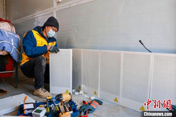 圖為西藏定日地震受災(zāi)地區(qū)的安置板房內(nèi),工作人員正在安裝取暖器。北京慈福公益基金會 供圖