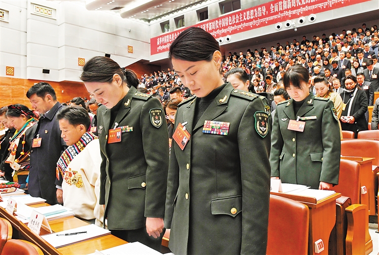 大會(huì)開幕前,全體人員起立,向地震中不幸遇難的同胞默哀。記者 旦增蘭澤 攝