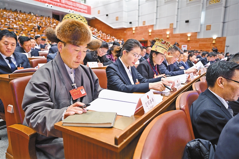 19日上午,自治區(qū)十二屆人大三次會(huì)議在拉薩開(kāi)幕。圖為代表們認(rèn)真聆聽(tīng)政府工作報(bào)告。記者 旦增西旦 攝