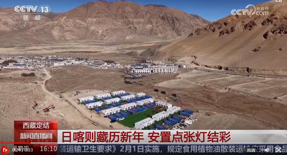 總臺央視記者 王莉:我現(xiàn)在是在日喀則定結(jié)縣的切村,今天是這里藏歷年的大年初一,是當(dāng)?shù)匾荒曛凶盥≈亍⒆钪匾膫鹘y(tǒng)佳節(jié)。可以看到,現(xiàn)場已經(jīng)裝點(diǎn)得很有節(jié)日的氛圍,家家戶戶都貼上了春聯(lián),掛上了喜慶的燈籠和福字。雖然今年在安置點(diǎn)里過年,但人們依然保持著傳統(tǒng)的習(xí)俗,在這一天,一定要穿上隆重的藏裝,一起吃一頓團(tuán)圓飯。
