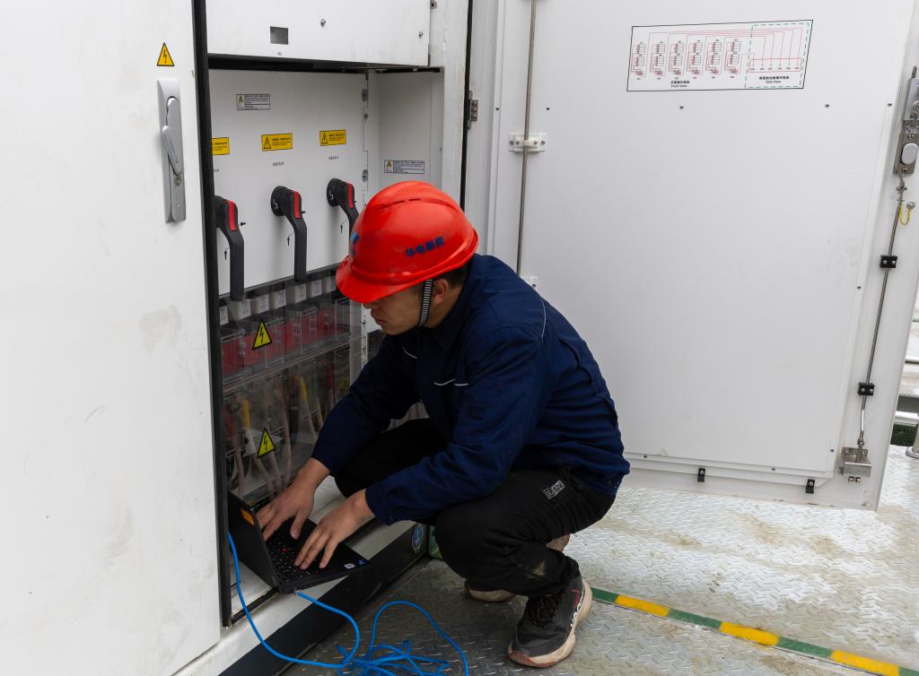 18時許,楊升平和同事們結束當天的檢查工作,回到山下的升壓站。楊升平向公司匯報一天的工作內容,接著安排人員對儲能電池放電。