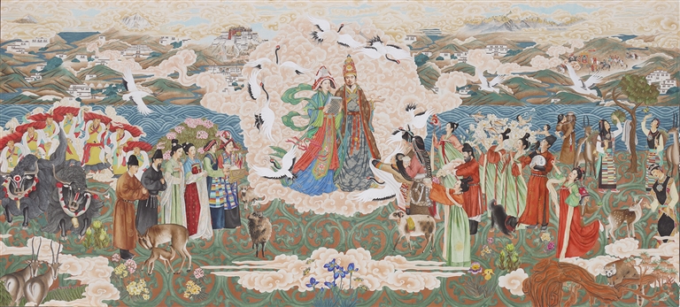 西藏的年畫(huà)起步較晚,但此次展覽卻給這一傳統(tǒng)藝術(shù)帶來(lái)了全新的發(fā)展契機(jī)?!靶律睢ば嘛L(fēng)尚·新年畫(huà)”展覽負(fù)責(zé)人扎西諾布介紹,展覽共展出近100幅作品,來(lái)自97位藝術(shù)家。不同地域的風(fēng)格在這方展廳中碰撞、交融,江南水鄉(xiāng)的溫婉細(xì)膩、巴蜀大地的熱情奔放、湘楚文化的靈動(dòng)飄逸、青藏高原的粗獷豪邁,都通過(guò)一幅幅年畫(huà)展現(xiàn)得淋漓盡致。