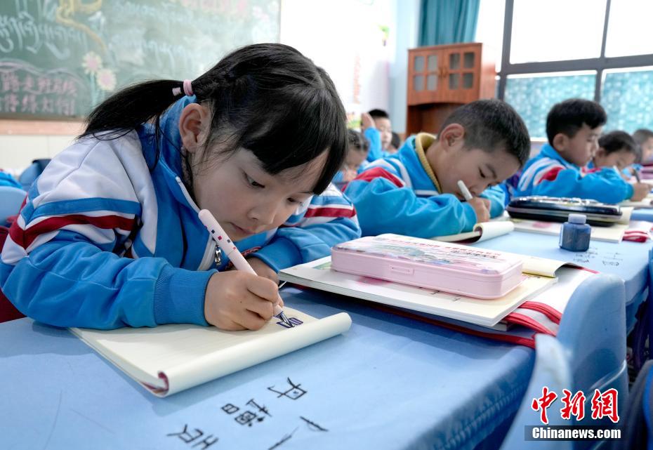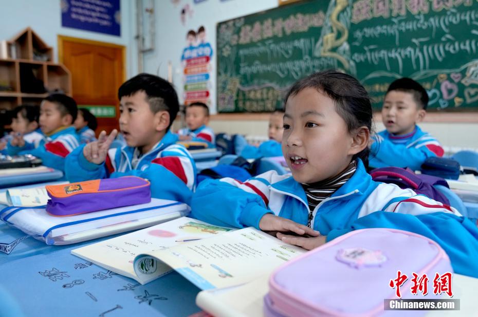 3月10日,拉薩市第一小學(xué)一年級八班學(xué)生們正在上藏語文課。當(dāng)日,西藏拉薩市春季學(xué)期開學(xué),各項教學(xué)工作有序開展。中新社記者 李林 攝